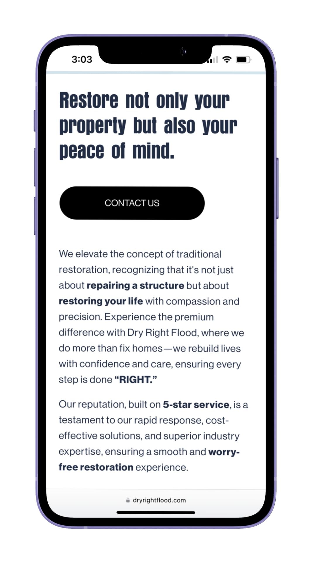 The results of the brand refresh for Dry Right Flood have been outstanding. We've seen a noticeable boost in organic traffic and lead generation, with a significant increase in website visits. The new, streamlined website and refreshed brand identity have greatly improved user engagement, leading to longer visit durations and fewer bounce rates. Our refined messaging and visual elements have deeply resonated with our target customers, fostering stronger trust and loyalty.